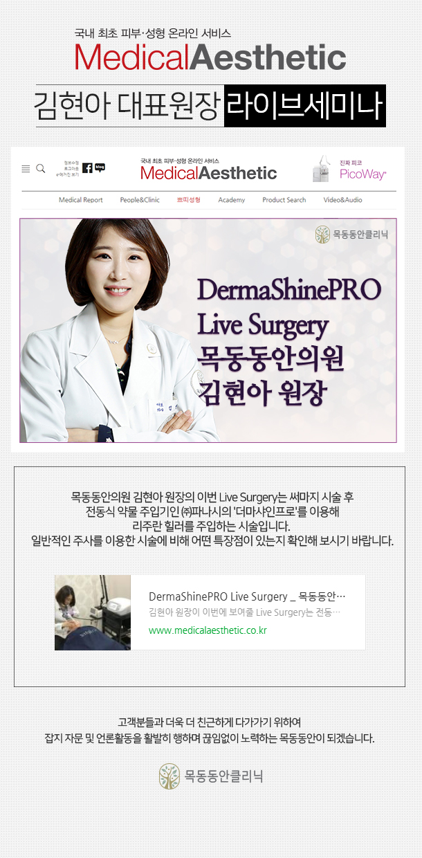 메디컬에스테틱 온라인라이브세미나 리쥬란힐러 진행건