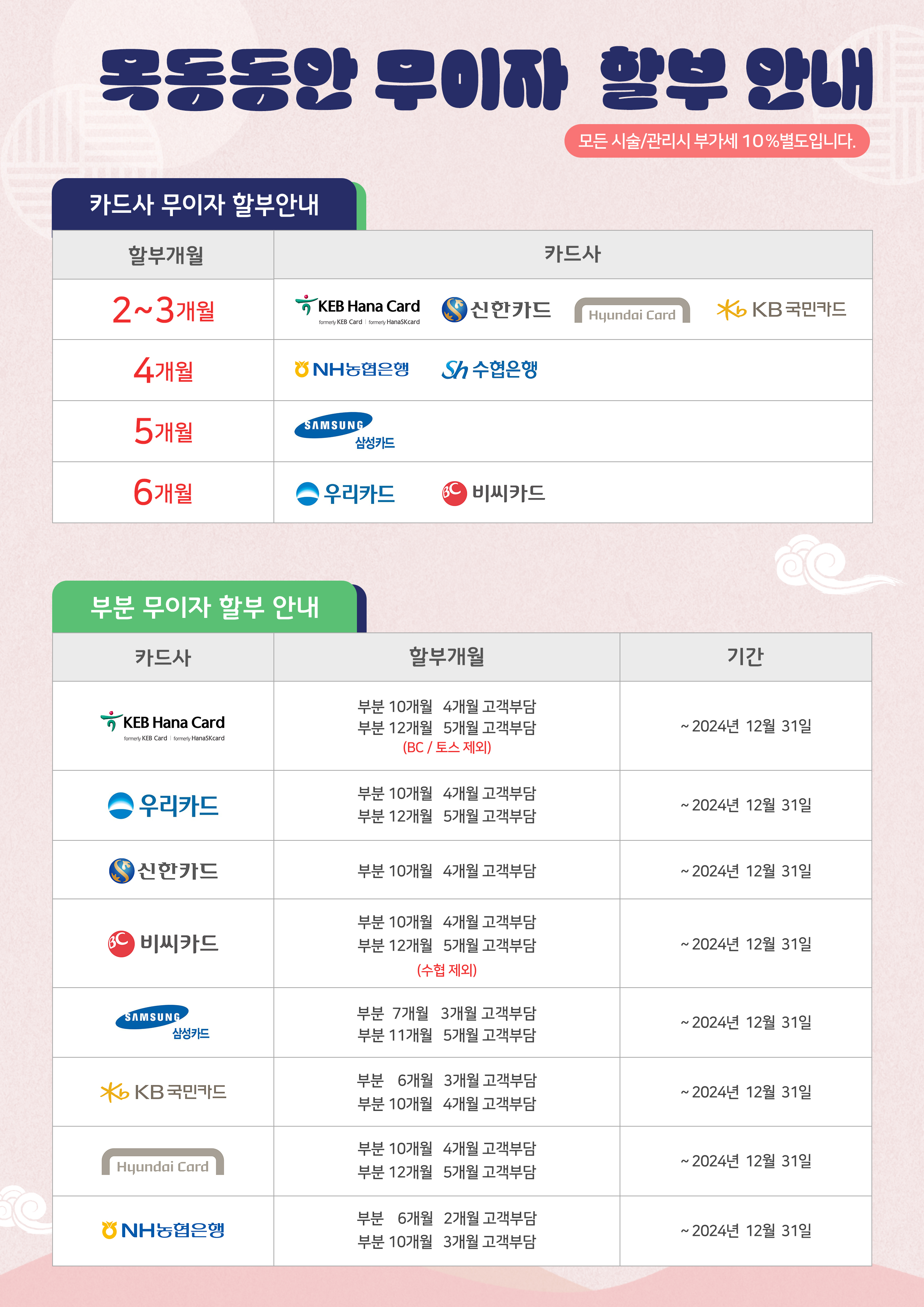 2024년 카드사별 무이자할부 안내