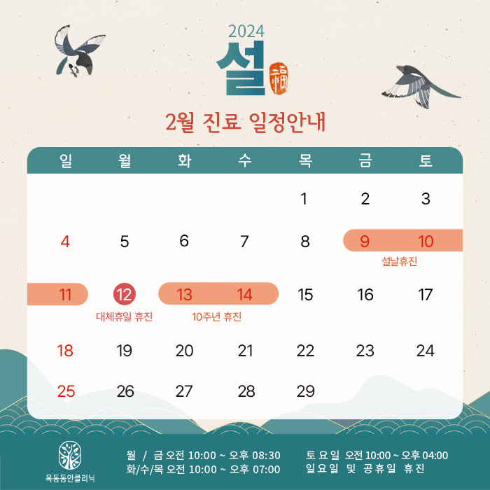 - 설날휴진 : 2월 9일 ~ 2월 11일