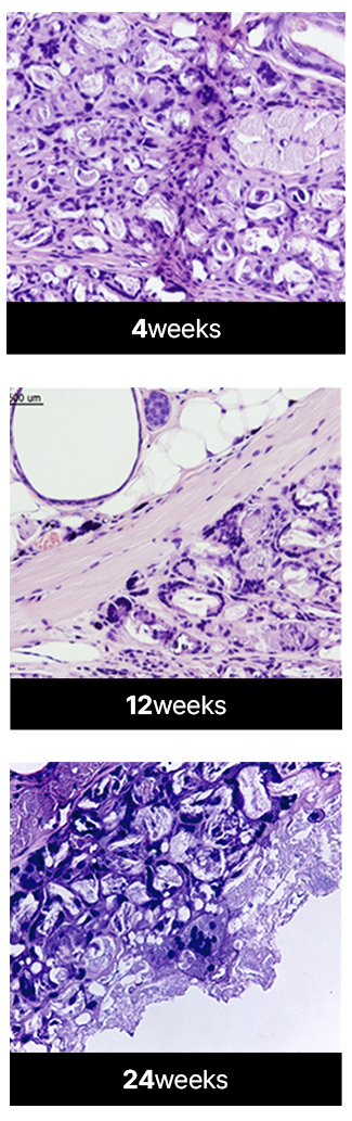 쥬베룩을 구성하고 있는 생분해성, 생체적합성 성분인 PLA와 HA가 체내 콜라겐의 생성을 촉진시켜 시간이 지날수록 자연스러운 피부탄력과 볼륨감을 구현합니다.