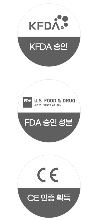 한국 식품의약품안전청 KFDA 승인은 물론 유럽 CE인증을 획득하였으며, 미국 식품의약품안전청이 승인한 성분을 사용하여 안전합니다.