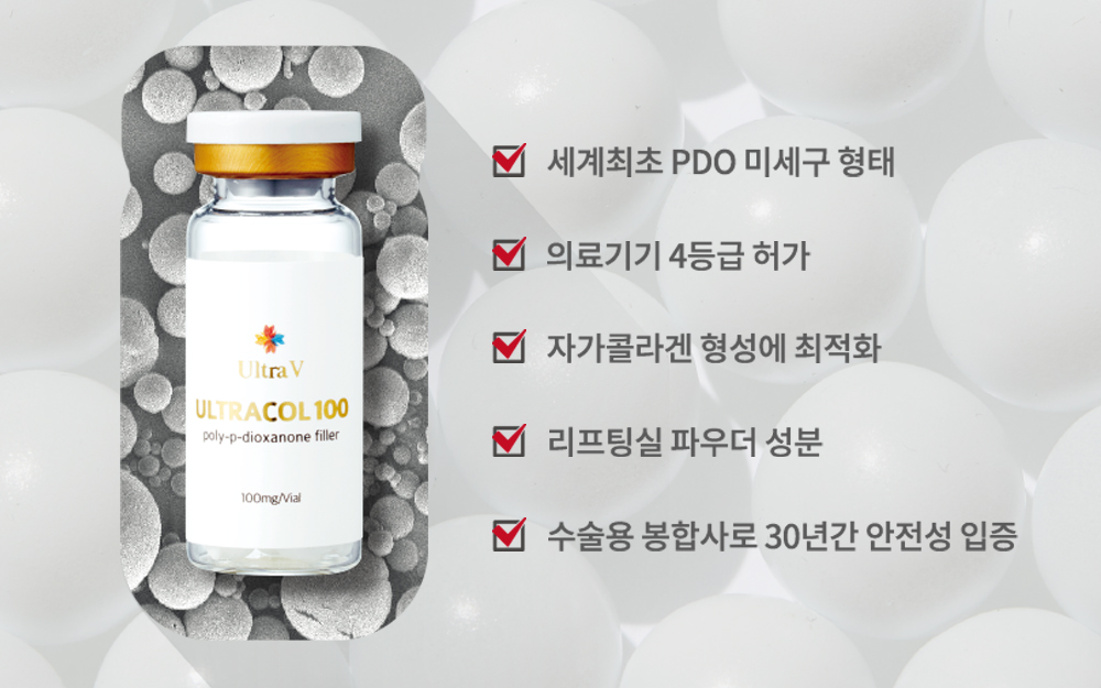 울트라콜은 실리프팅의 실을 구성하는 PDO실을 액상화시킨 콜라겐부스터로, 모노실 1427개를 시술받은 것과 동일한 콜라겐 재생효과를 구현합니다.