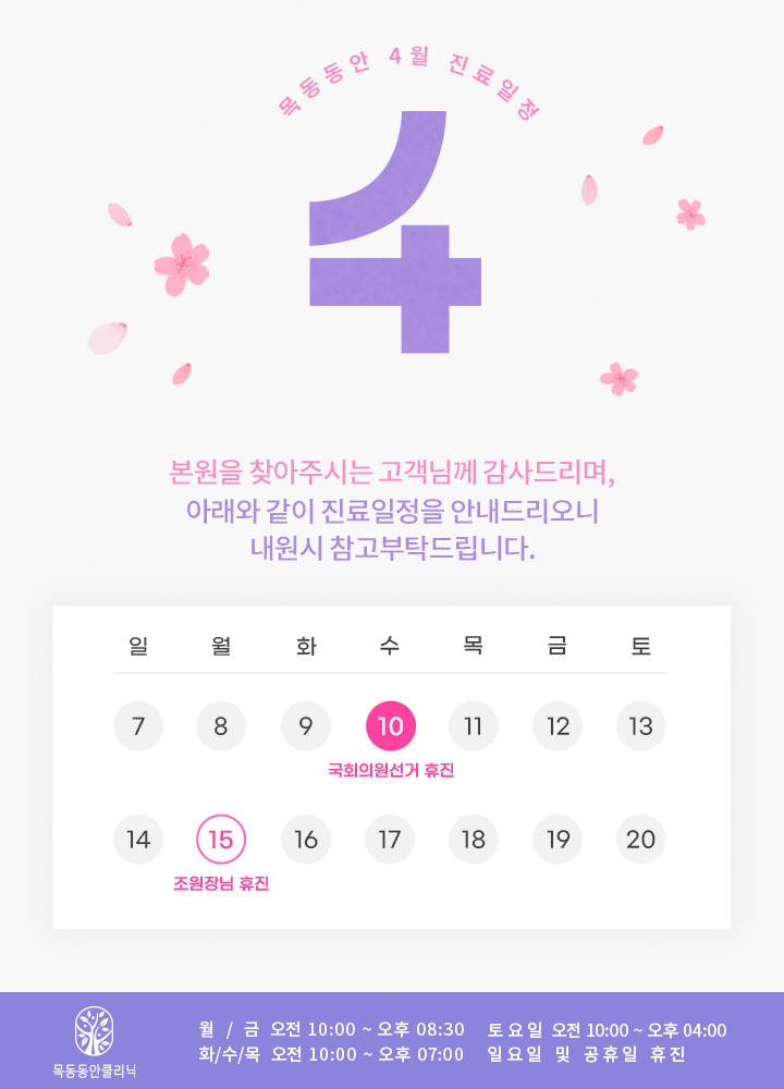 - 국회의원선거 휴진 : 2024년 4월 10일 (수)