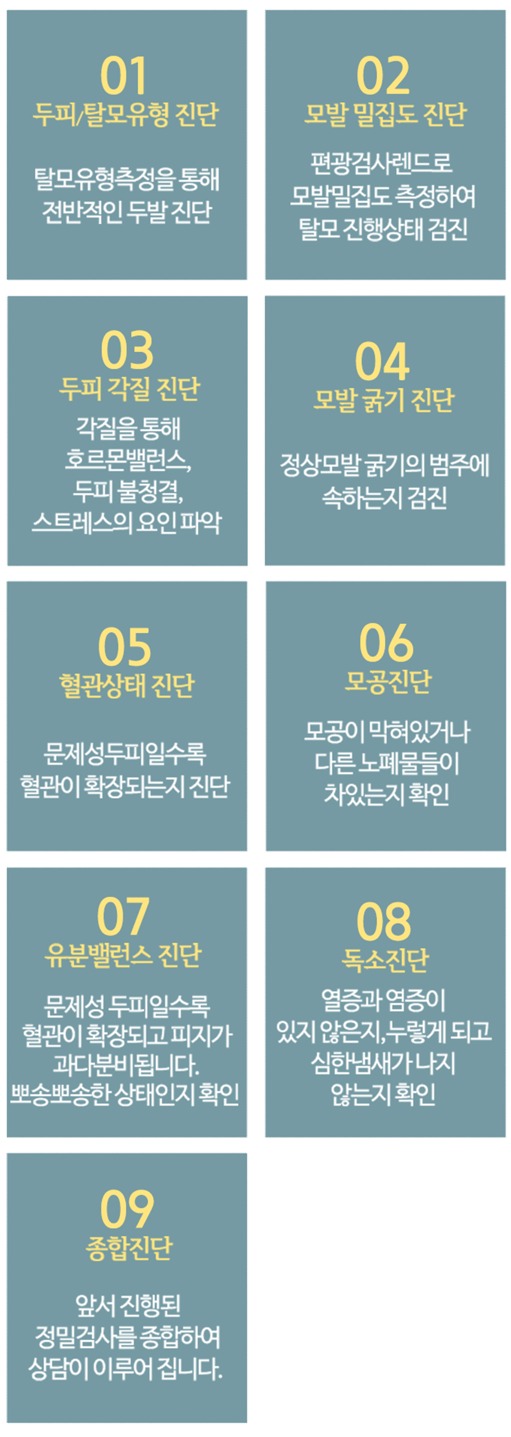 탈모 검진 전 설문지 작성을 통해 평소 생활습관과 건강을 체크하여 평소 두피의 증상을 정밀하게 파악하고 원인분석합니다.