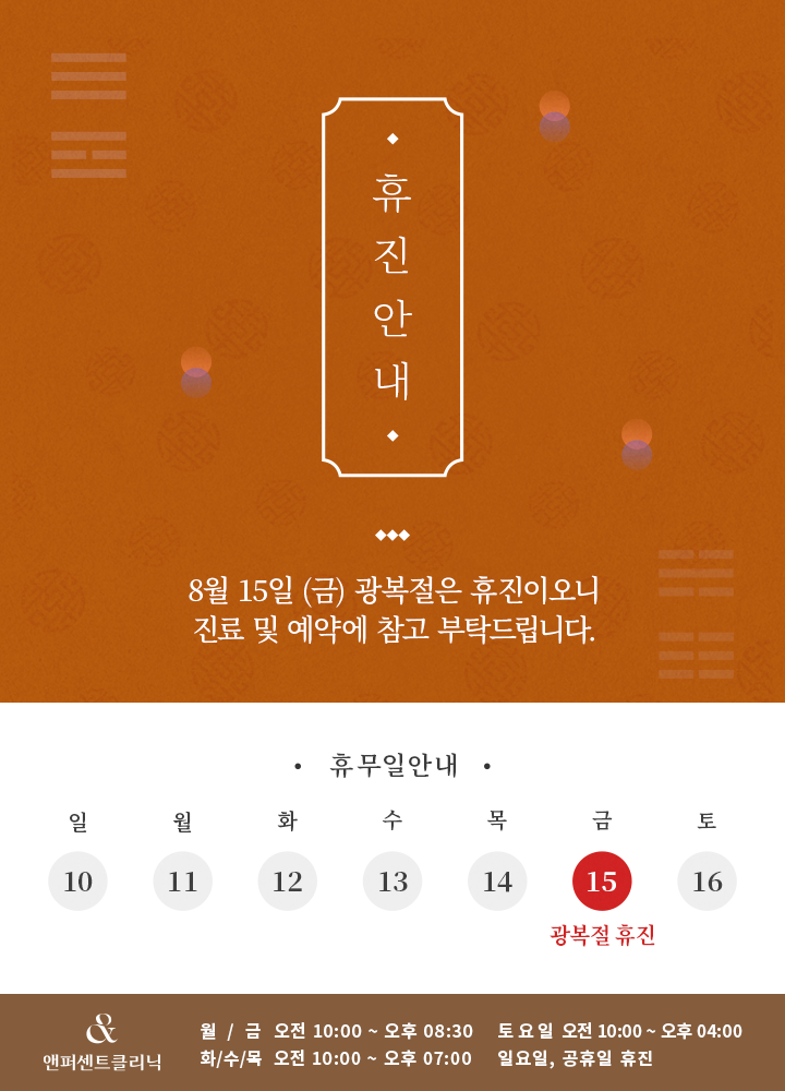 아래와 같이 앤퍼센트클리닉의 8월 진료일정