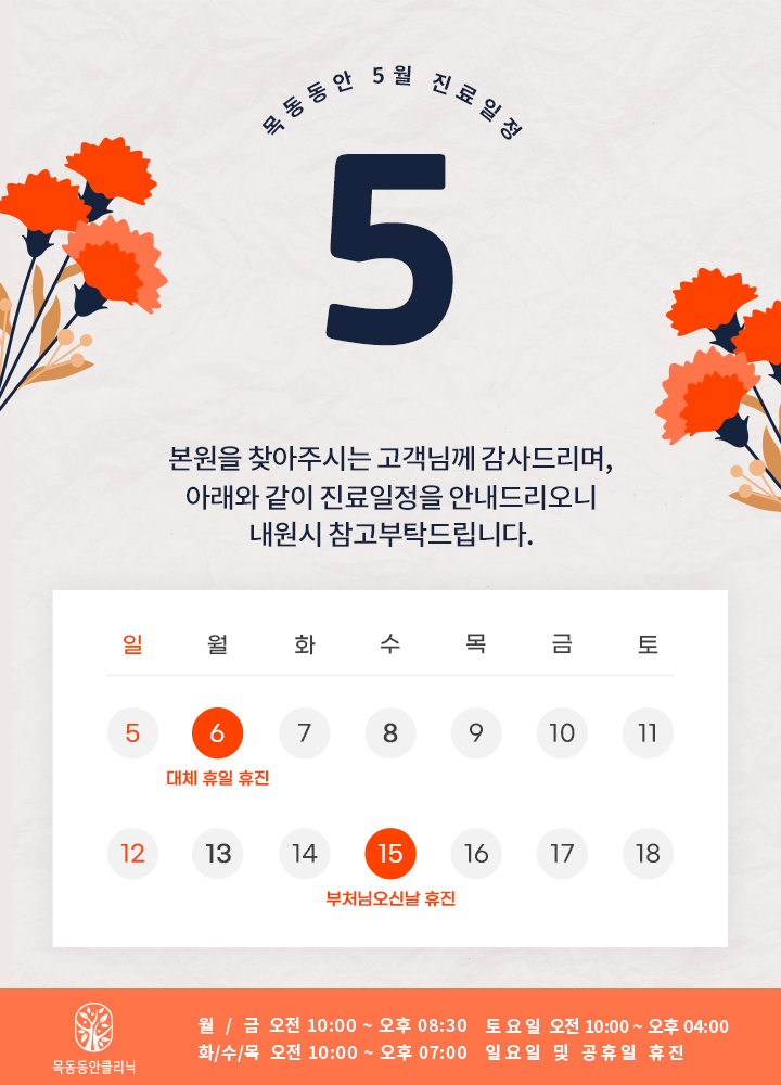 - 2024년 5월 15일 (수) : 부처님오신날 휴진