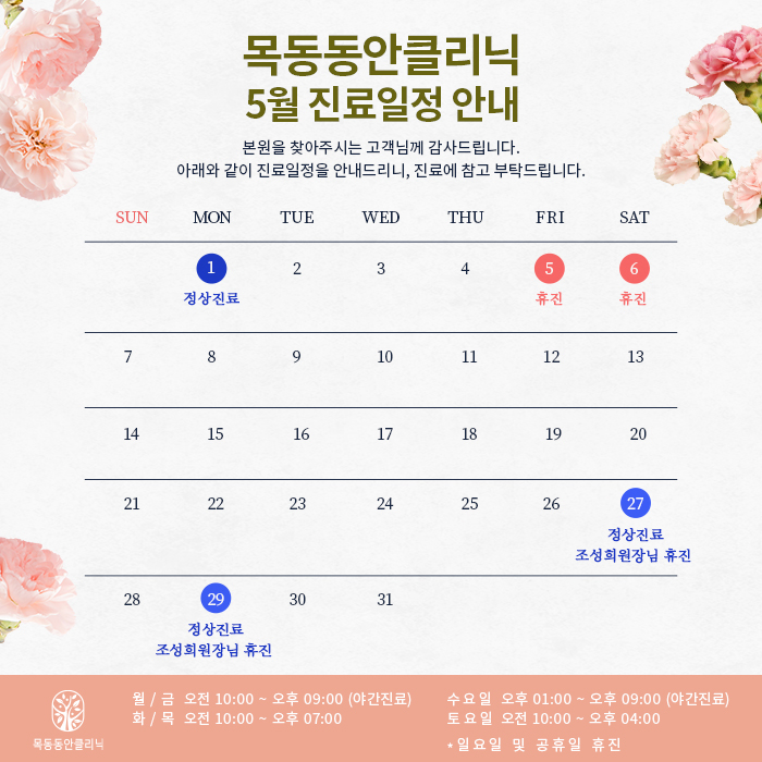 5월 27일 : 정상진료, 조성희원장님 휴진