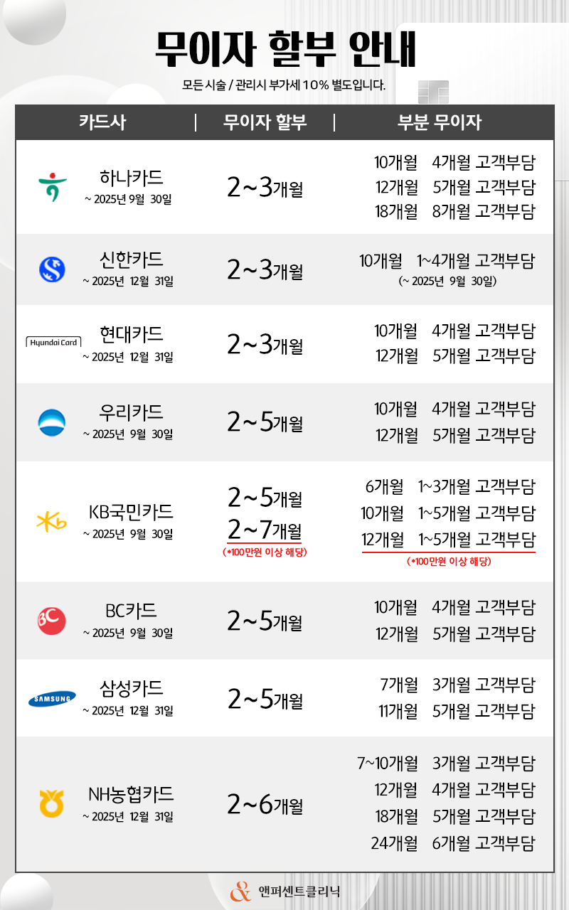 2025년 카드사별 무이자할부 안내