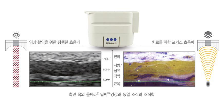 피부 표면의 손상 없이 피부 속 조직에 고강도 초음파 에너지를 전달하여